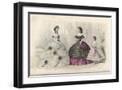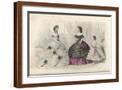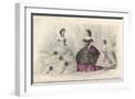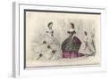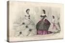 White Silk Ball Dress with 3 Skirts of Tulle Looped up with Blue Daisies