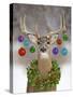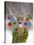 White-Tailed Deer Buck in Winter Snow with Christmas