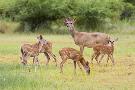 White-Tailed Deer (Odocoileus Virginianus) Doe with Fawns, Texas, USA