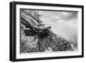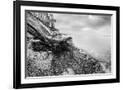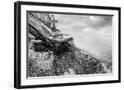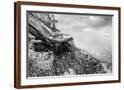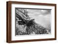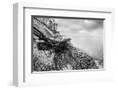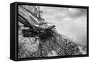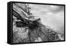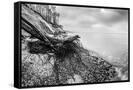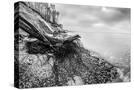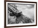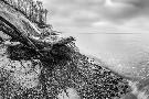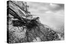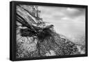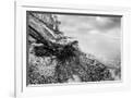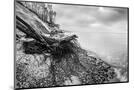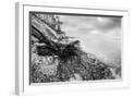 Wild Beach with Fallen Tree and Cliffs on a Winter, Cloudy Day. Waves on the Sea. Black and White. Photo Print