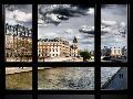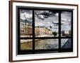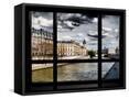 Window View, Walk a Couple of Lovers on the Seine, Ile Saint Louis, Seine River, Paris Photo Print