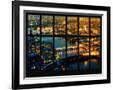 Window View of City of London at Pink-Night - River Thames - London - UK - England