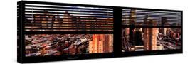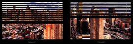 Window View with Venetian Blinds: 42nd Street and Times Square at Pink Sunset Photo Print