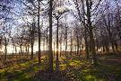 Winter woodland backlit by the late afternoon sun, Longhoughton
