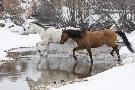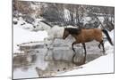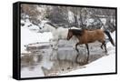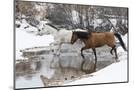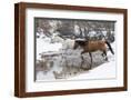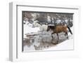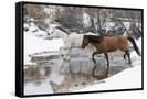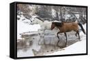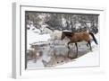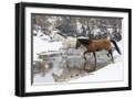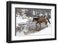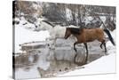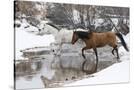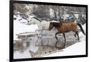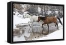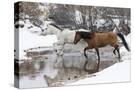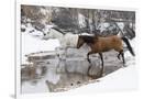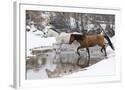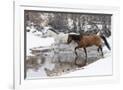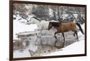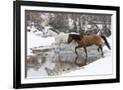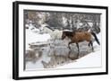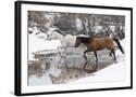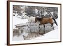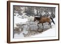 Wintertime Hideout Ranch, Wyoming with horses crossing Shell Creek Photo Print