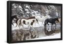Wintertime Hideout Ranch, Wyoming with horses crossing Shell Creek Photo Print