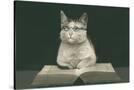 Wise Cat Reading Book Wall Art Print