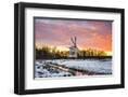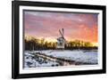 Witte Molen (White Mill) Dutch windmill in winter at sunset, Harn, Groningen, North Holland, Nether