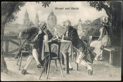 Wolfgang Amadeus Mozart the Austrian Composer with His Tutor, Josef Haydn (L)