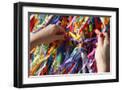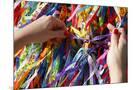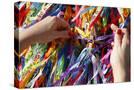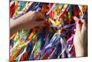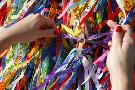 Woman Tying Lucky Ribbon at Igreja Nosso Senhor do Bonfim Church, Salvador, Bahia, Brazil