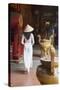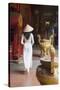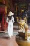 Woman Wearing Ao Dai Dress at Ha Chuong Hoi Quan Pagoda, Cholon, Ho Chi Minh City, Vietnam