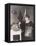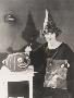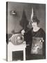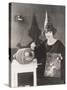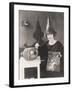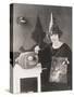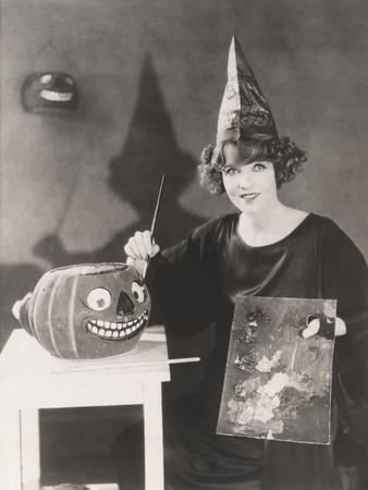 Woman in Pointy Hat Painting a Jack O'Lantern Photo Print