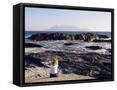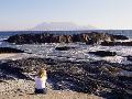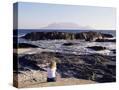Woman on Beach at Bloubergstrand Looking Across to Table Mountain, Cape Town, South Africa, Africa