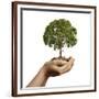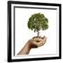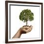 Woman's Hands Holding Soil with a Tree Wall Art Print