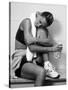 Women Resting after Exercise Session in Fitness Studio, New York, New York, USA