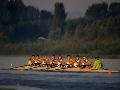 Women's Eights Rowing Team in Action, Vancouver Lake, Washington, USA