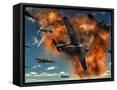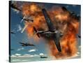 World War II Aerial Combat Between American P-51 Mustang and German Focke-Wulf 190 Fighter Planes