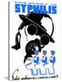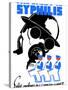 World War II Poster of a Soldier Wearing a Gas Mask And Men in Overalls Marching Photo Print