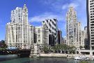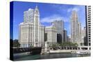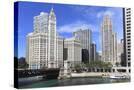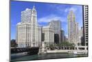 Wrigley Building and Tribune Tower, across Chicago River to N Michigan Ave, Chicago, Illinois, USA