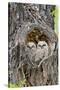 Wyoming, Grand Teton National Park, Great Horned Owlets in Nest Cavity