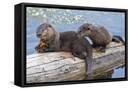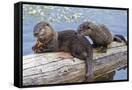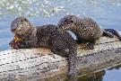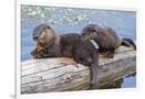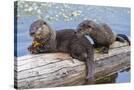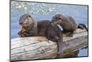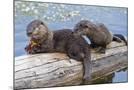 Wyoming, Yellowstone National Park, Northern River Otter Pups Eating Trout