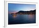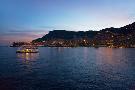 Yacht and seaside night view of Monte-Carlo with lights at dusk, in the Principality of Monaco,... Photo Print