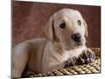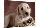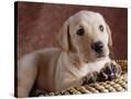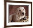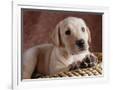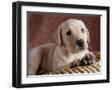 Yellow Lab Puppy in Basket Photo Print