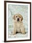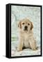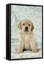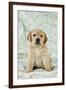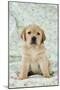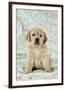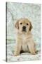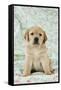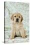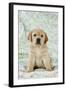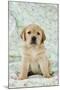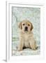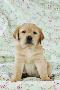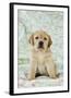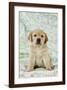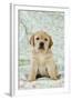 Yellow Labrador Puppy Sitting on Blanket Photo Print
