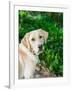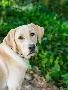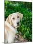 Yellow Labrador dog portrait outdoors.