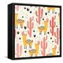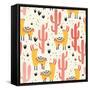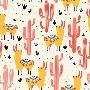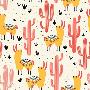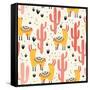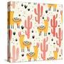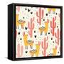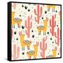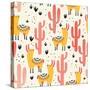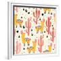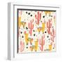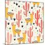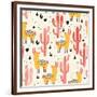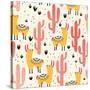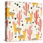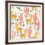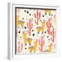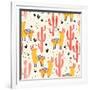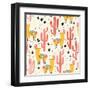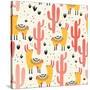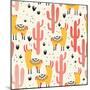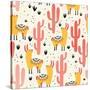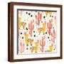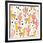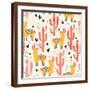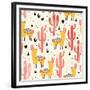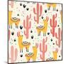 Yellow Llamas and Red Cacti Pattern Wall Art Print
