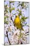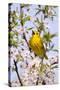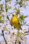 Yellow Warbler (Dendroica petechia) adult male, singing, perched in flowering cherry, USA