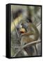 Yellow baboon (Papio cynocephalus) juvenile eating a duom palm fruit, Selous Game Reserve, Tanzania