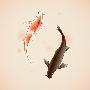 Yin Yang Koi Fishes In Oriental Style Painting