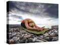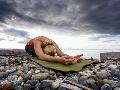 Yoga Position of Child's Pose in Lincoln Park - West Seattle, Washington