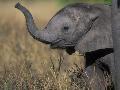 Young Elephant Calf at Mother's Feet, Khwai River, Chobe National Park, Botswana