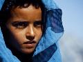 Young Girl in Characteristic Saharan Blue Headscarf Looking into Distance, Sahara, Southern Morocco