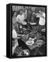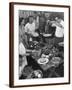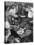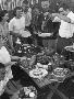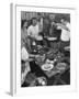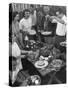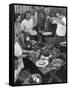 Young Married Couples Enjoying a Backyard Buffet Feast , Featuring Spaghetti