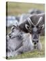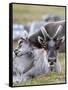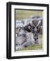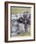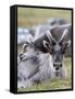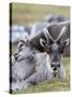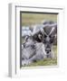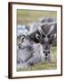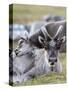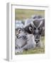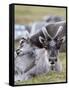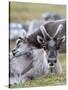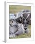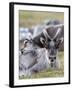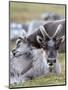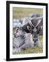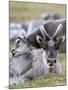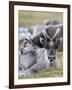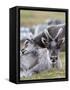 Young Svalbard Reindeer Rubbing its Head on Adults Back, Svalbard, Norway, July