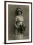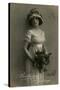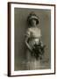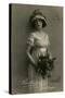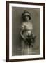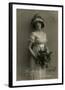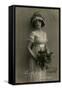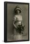 Young Woman with Roses on a Birthday Postcard Photo Print