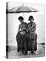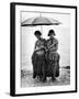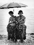 Young Yap Island ladies sporting traditional Grass Skirts, Sharing umbrella in the Caroline Islands
