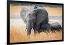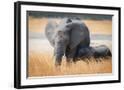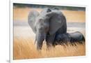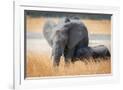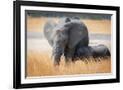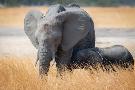 Young elephant calf and its mother in Hwange National Park, Zimbabwe, Africa