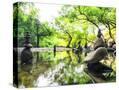Zen Pond in Forest. Photography of Stone Towers, Peace and Calm Concept