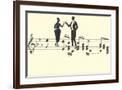 Couple Toasting on Musical Staff Wall Art Print
