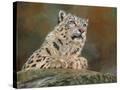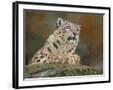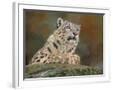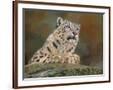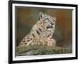 snow leopard rock Wall Art Print